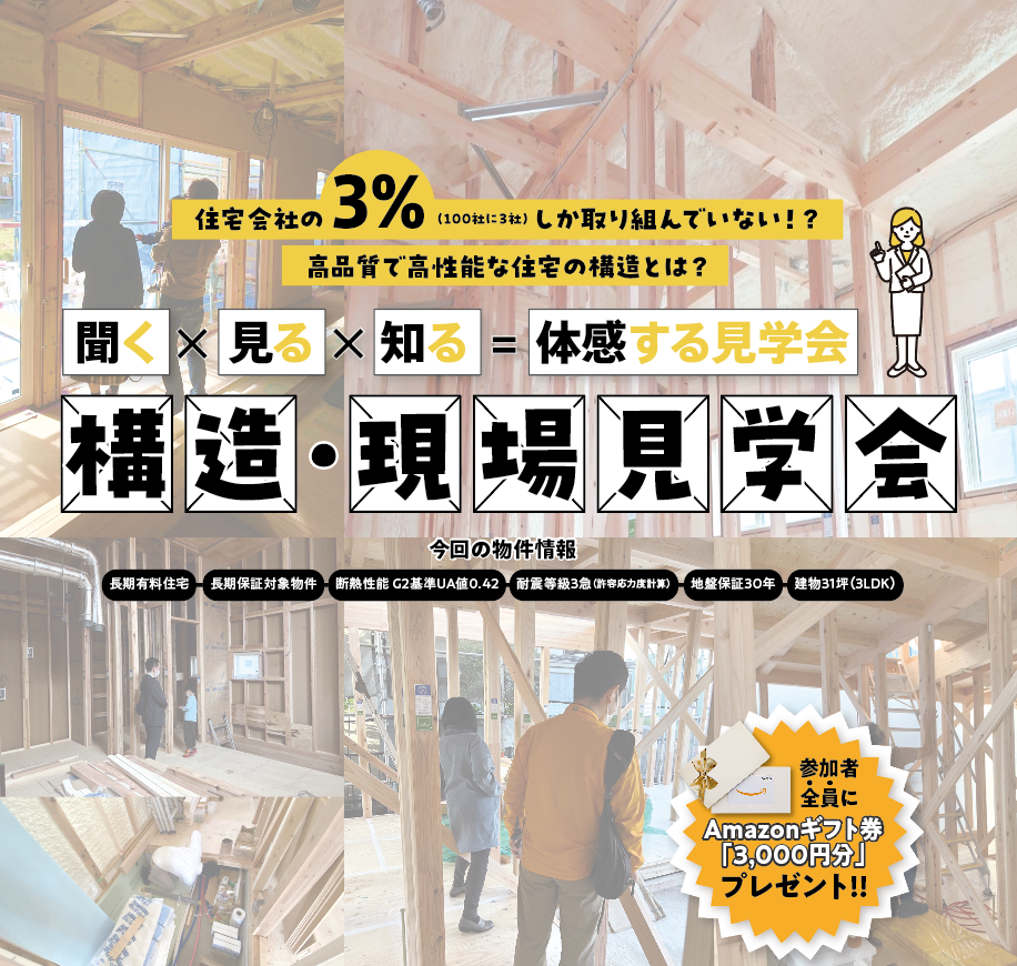 “住宅会社の3%しか取り組んでいない高品質&高性能住宅”の構造を実際に見学できるチャンスです!