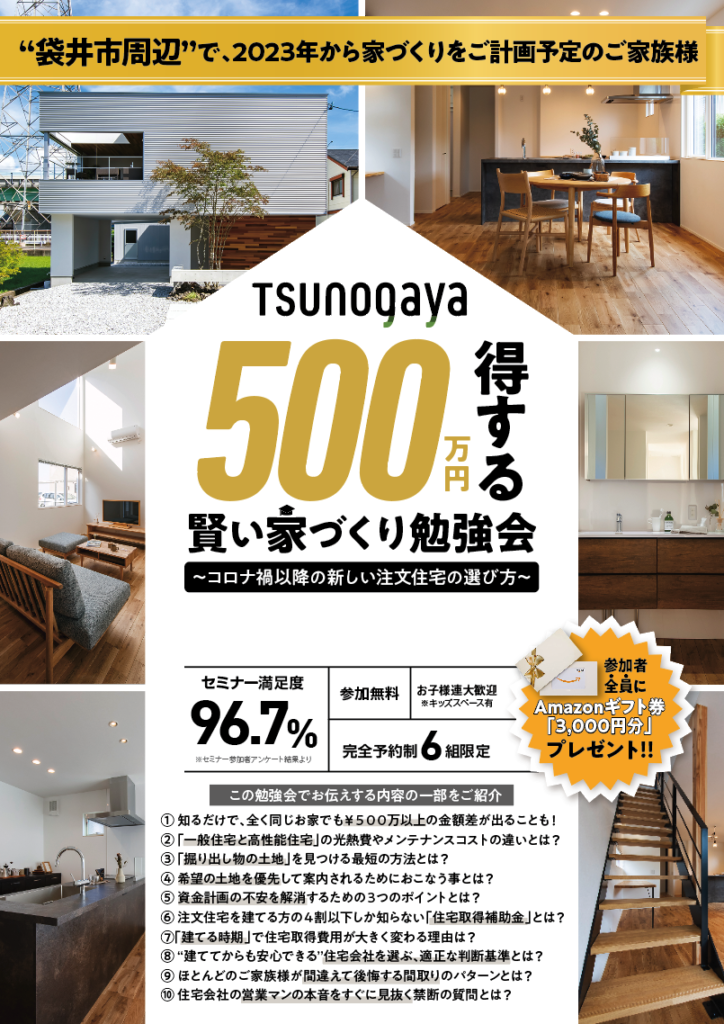 「500万円得する、賢い家づくり勉強会」を開催します。