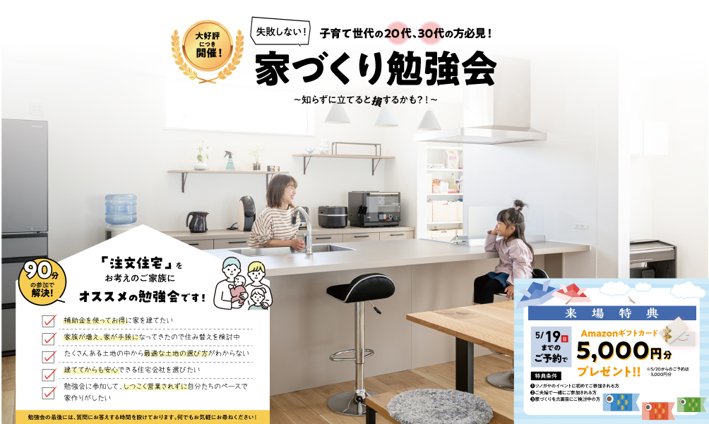 特に、注文住宅や建て替えにご興味をお持ちの方々へ、是非この機会に『失敗しない家づくり勉強会』へのご参加をお勧めしております。補助金を活用してお得に、そして安心して家づくりをスタートできます。家づくりについて不安を感じている方もご安心ください。私たちプロフェッショナルが、わかりやすく楽しい形で情報提供を行い、サポートさせていただきます。もちろん、強引な営業は一切行いませんので、ストレスなくご家族様のペースで必要な情報を得られます。