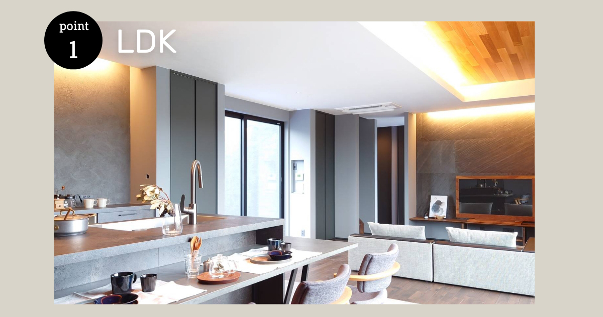 家族が集うリビングは、間接照明の柔らかなあかりで大人の高級感を演出。落ち着いた空間で、ゆったりとした時間を過ごせます。おしゃれなデザインが毎日の生活を彩ります。