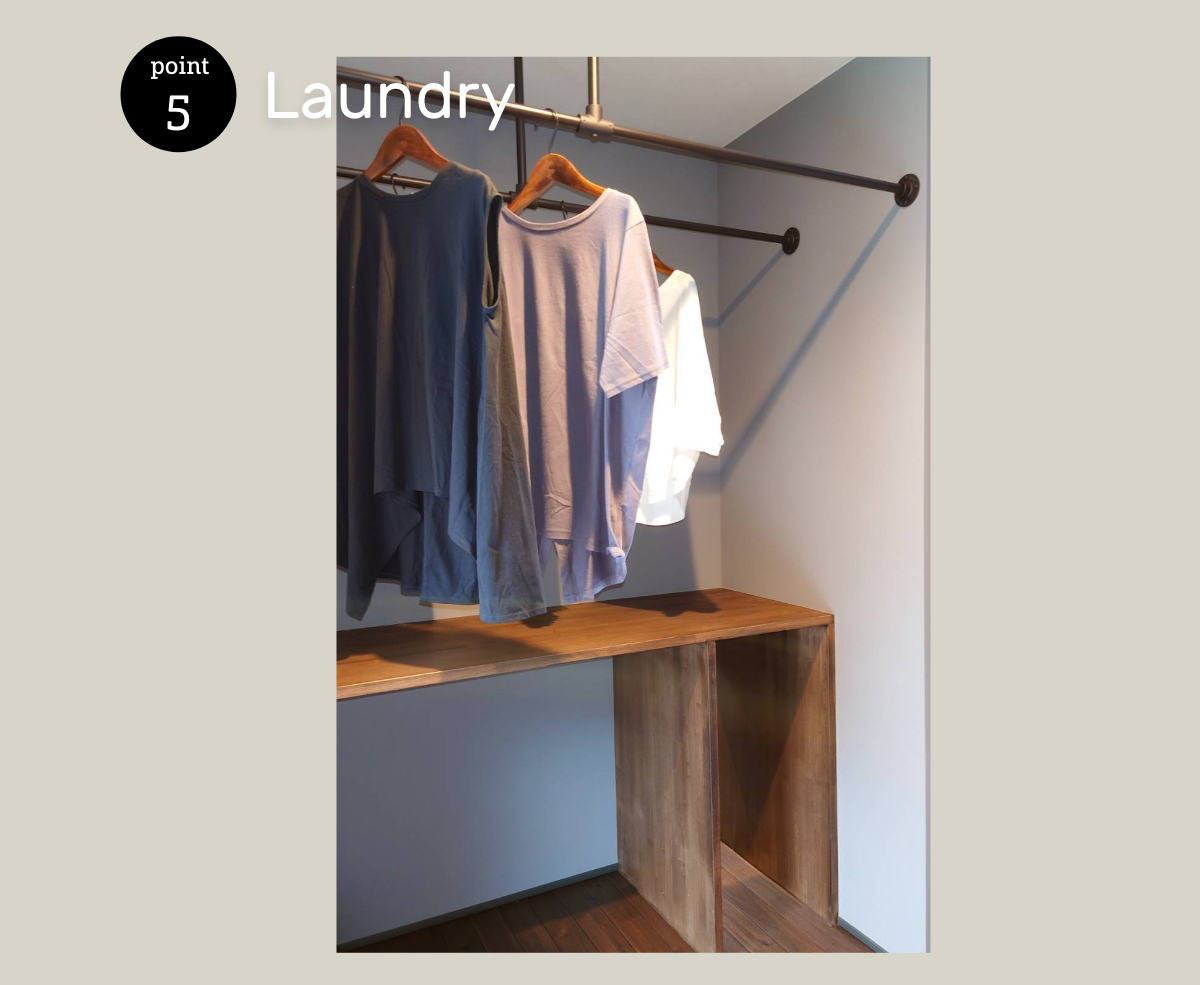 天候に左右されない便利なランドリールーム。『洗う→干す→たたむ』を一つの空間で完結でき、快適で使い勝手が良いデザイン。家事の負担を軽減し、日常生活をよりスムーズにします。