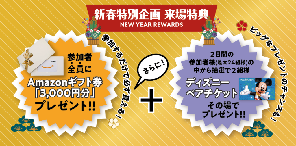 さらに、抽選で(2日間で2組様)ディズニーペアチケットをその場でプレゼント!