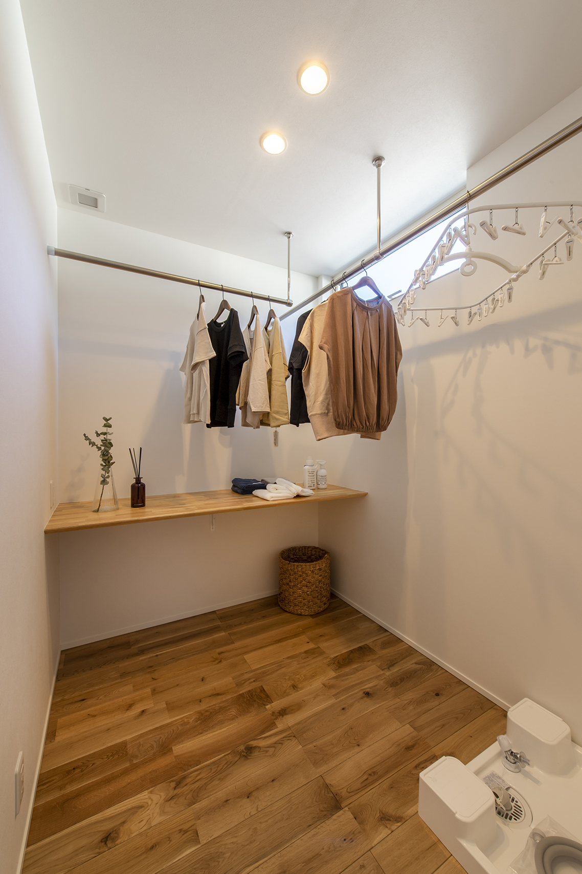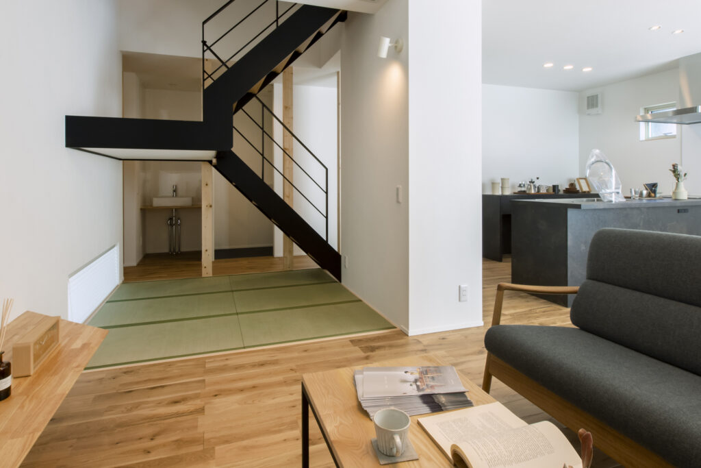 広がりのあるLDKや使い勝手の良いランドリースペースは、毎日の生活を快適にします。回遊性のある設計は、子どもたちが自由に走り回ることを可能にし、帰宅したらすぐに手を洗えるようにする衛生面への配慮も見逃せません。そして、オリジナルアイアンの階段や落ち着く畳スペース、可変性のある子供部屋など、ディテールにもこだわりました。