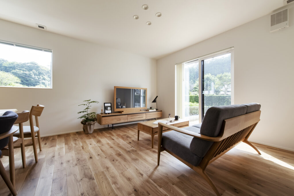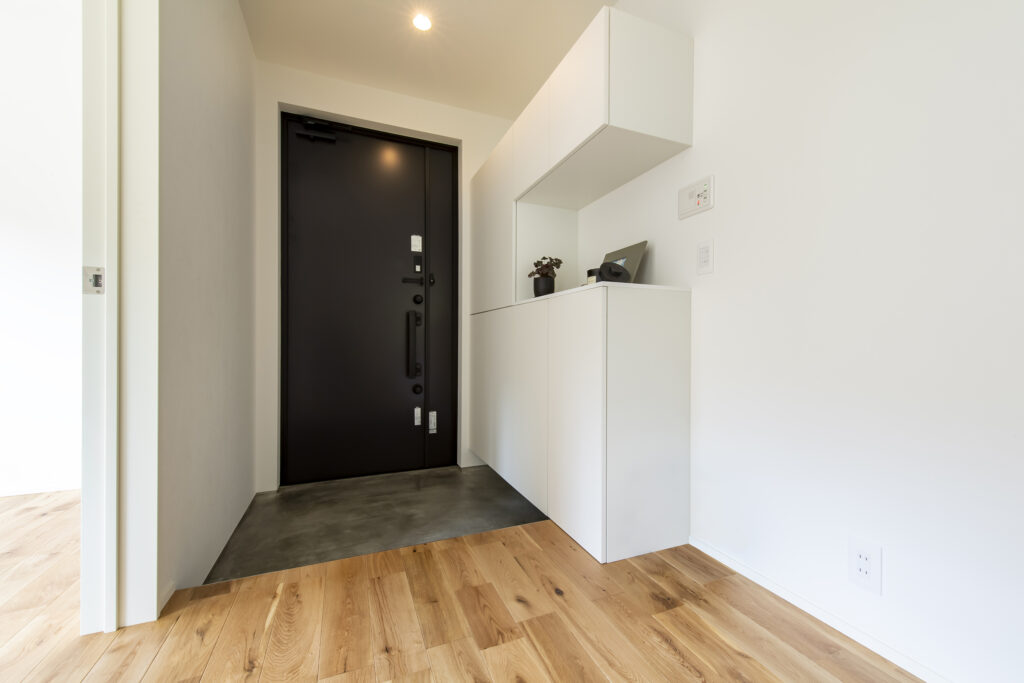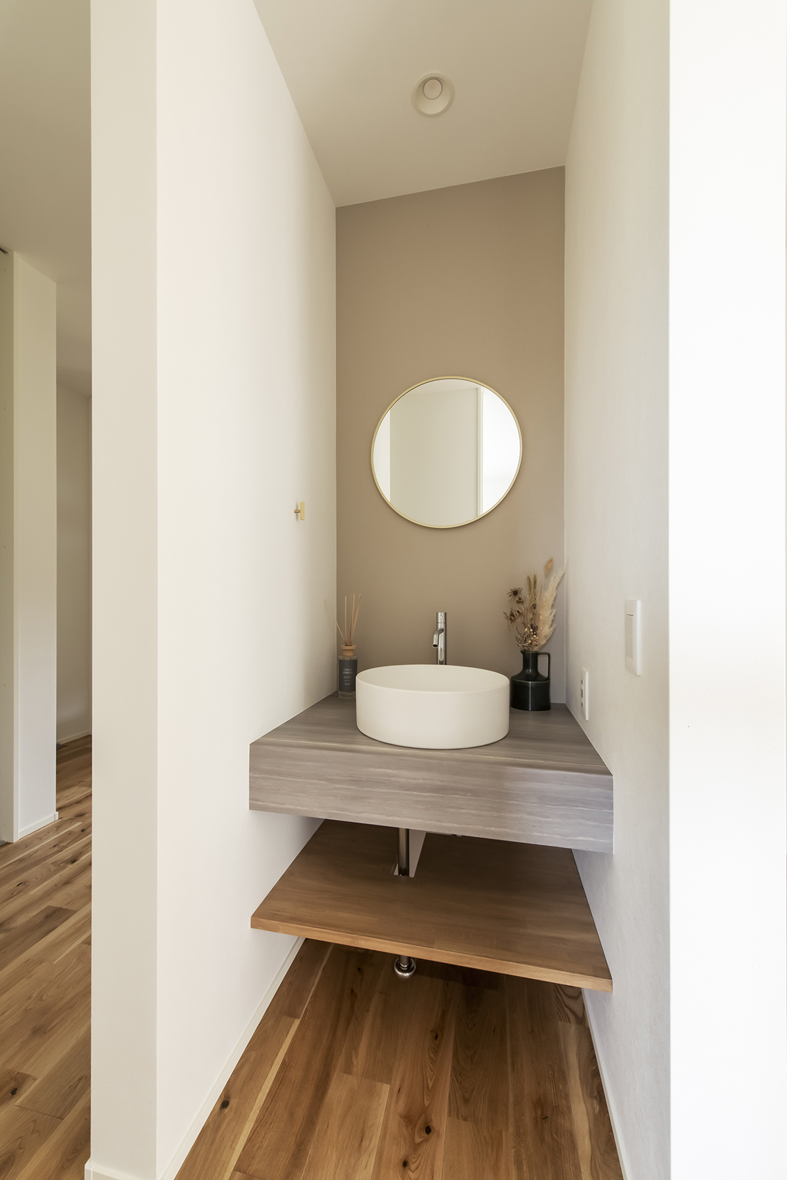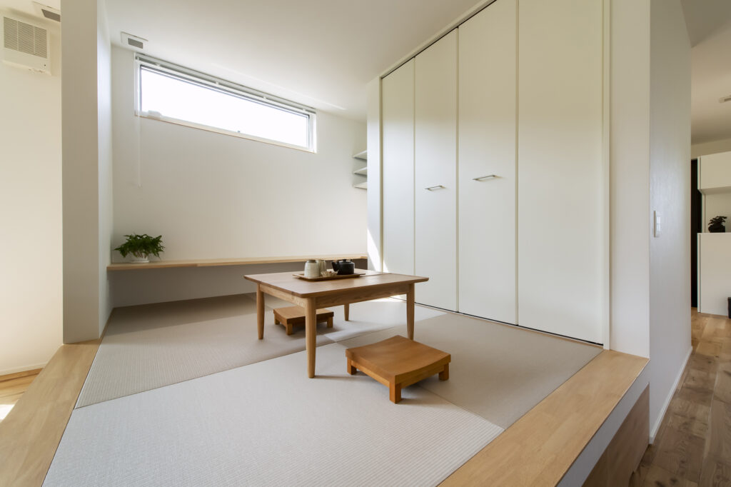 この平屋住宅は、洗練されたデザインと快適性のバランスが絶妙です。最初に目を引くのは、心地よさを漂わせる玄関ポーチ。ブラックのガルバリウムに、レッドシダーの温かみが加わることで、訪れるたびに安らぎを感じさせます。玄関を進むと、シンプルかつエレガントなホールが現れ、日々の生活を一層華やかにしてくれます。広々としたリビングは、自然の光をたっぷり取り込みながら、家族のリラックスタイムを豊かに演出。隣接する畳の空間は、日常の様々なシーンに合わせてアレンジ可能です。キッチンは先進のGRAFTEKTを取り入れ、調理をもっと楽しく、もっと魅力的に。ダイニングスペースとの一体感は、家族の会話やコミュニケーションを自然と増やしてくれます。インテリアの色彩は、一貫性を持ちつつも新鮮さを保ち、それがスタイリッシュな手洗いコーナーや機能的なクローゼットスペースにも反映されています。この住宅のすべての角度が、家族の幸せな日常を考え、その答えとなるよう設計されています。