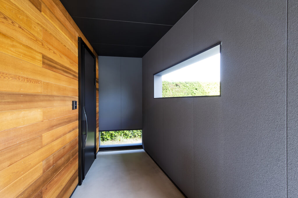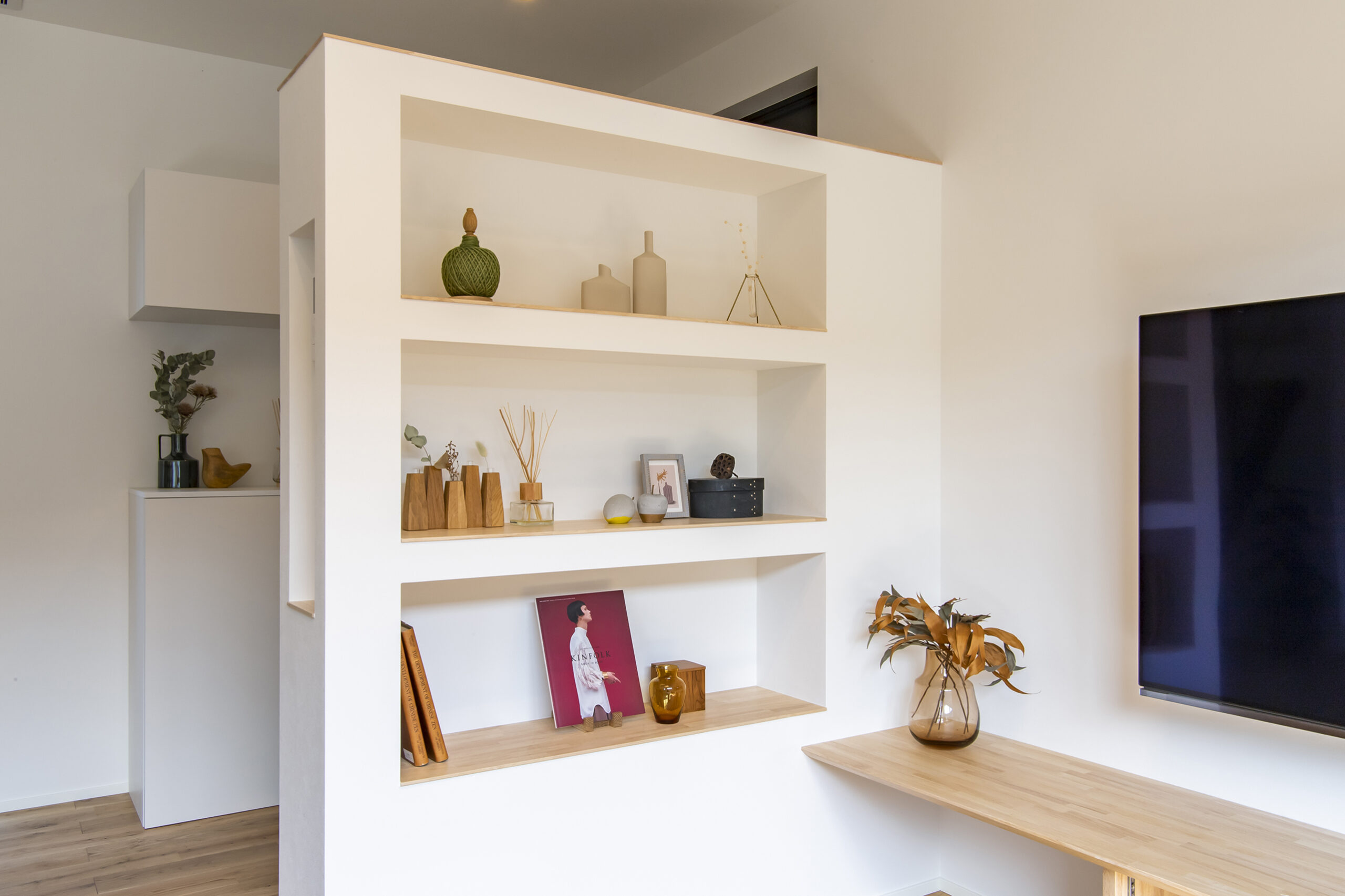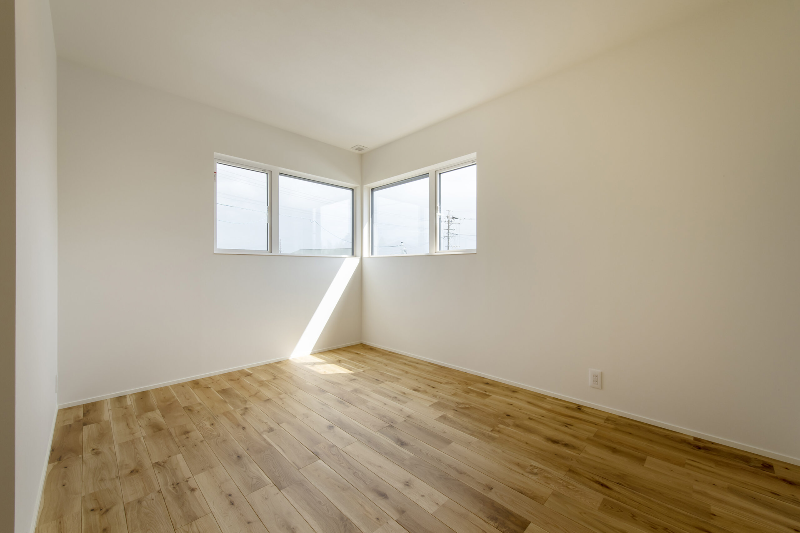 のどかな環境になじむとともに、カッコいい外観を持ち、板張りアクセントの大きな玄関ポーチと、プライベート空間(庭)を確保しつつ風通しも考慮された設計が特徴。広々としたLDKへ続く玄関を開けると、家族に丁度良い落ち着くリビングが広がります。キッチン背面に使用された大好きな白いタイルは、間接照明のあかりでより一層引き立てられ、毎日の料理が一層楽しくなります。また、冷蔵庫もスマートに収納され、キッチンスペースが広々としています。リビングに隣接する家族の書斎には、大型の本棚が設けられ、書籍を自由に飾ることができます。2階の主寝室は、たくさんの日差しを取り込む設計で、さらにWICも完備されています。バランスよく配置された収納スペースとともに、ここには家族の安心と快適さが詰まっています。