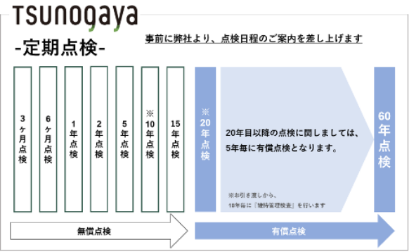 保証を延長する場合は、維持管理検査(20年目以降は有償)を必ず受けていただき、必要に応じて、有償メンテナンスが発生する場合がございます。