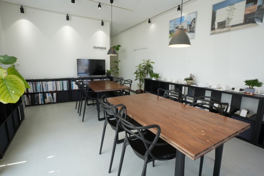 | 備考 | ツノガヤの相談スペースは、お客様がリラックスしてご相談できるよう、居心地の良い環境を整えております。 温かみのある内装と自然光が差し込む空間で、家づくりに関するお話をじっくりとお伺いします。 |