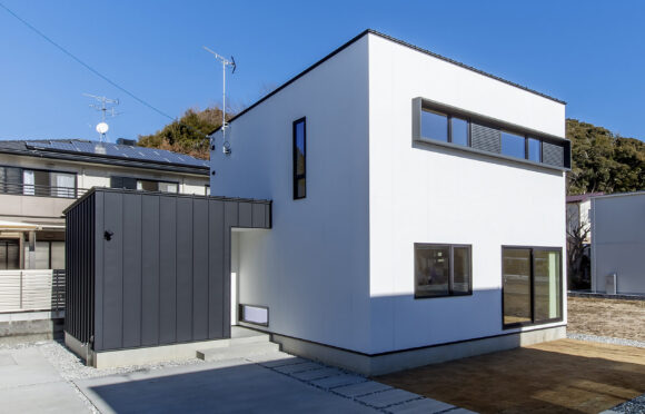 正面の大窓が印象的な、光と静けさをまとう箱の家